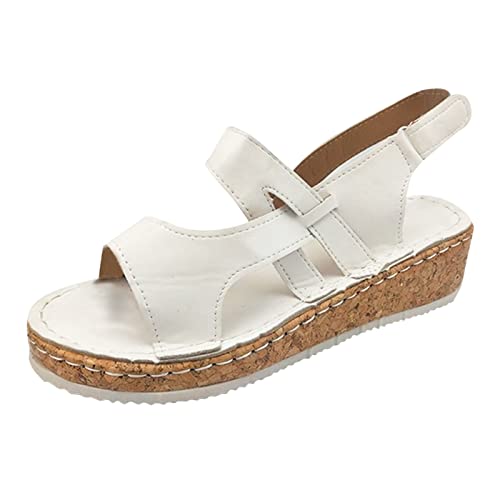 Générique Chaussure Orthopedique Femme Sandales Compensées Chaussures Plates Décontractées pour Femmes,Sandales D'Été À La pour Dames Chaussures Femme Ete Plateforme (White,38)