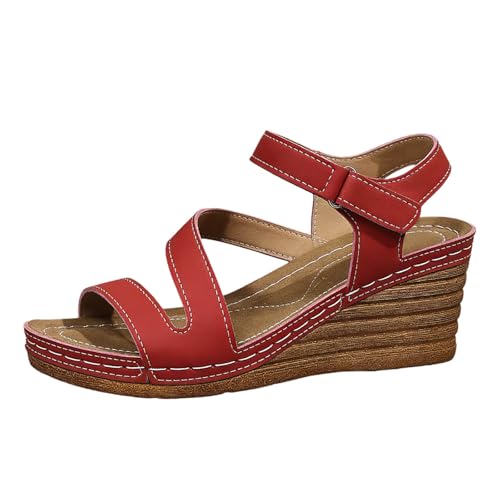 Sandales Compensées Femme Chaussure Femme Sandale Talon Compensé Chaussures Ouvertes Sandalettes Ete Plateforme Été Compensee Cuir Blanche Bohème Pieds Larges 38 Ouverte Confortable Pied Large Rouge