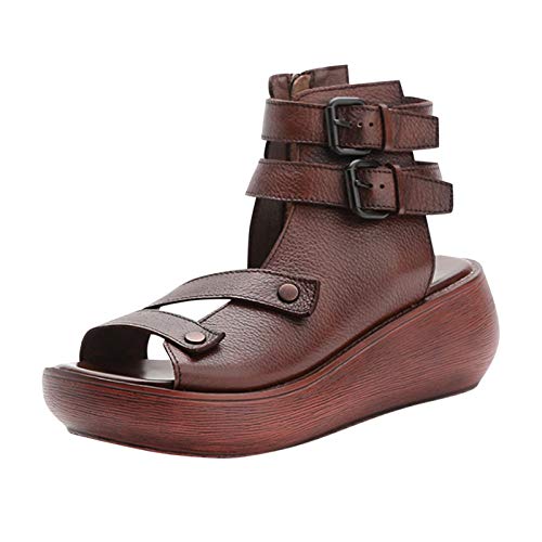 Générique Sandales Plateforme Femme Pieds Larges Chaussures Sandales Confortables À Semelle Compensée Et Bride À La Cheville pour Femme,Chaussures D'Été Ete Plateforme Été (Brown,39)