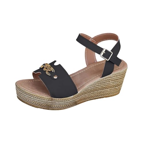 Générique Sandales Confort Femme Orthopedique Chaussure Ete Sandales Bohèmes Lady Slope Avec Jupe Compensée Été Avec Chaussures Romaines À Fleurs Chaussures Ete Femme Plateforme Été (Black,42)