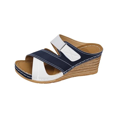 Chaussures en toile pour femme - Noir - Chaussures de plage avec talon creux - Pantoufles décontractées - Chaussures pour femme - Doublure chaude, Marine, 42 EU