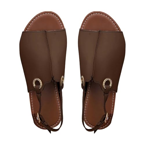 Chaussures d'extérieur doublées pour femme - Sandales de plage creuses - Décontractées - Chaussures plates - Chaussures pour femme - Doublure chaude, marron, 40 EU