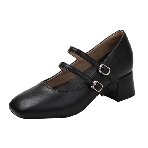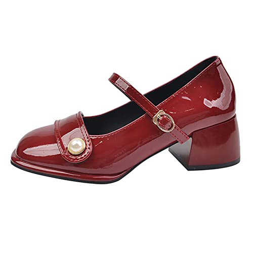 OALEEN Mary Jane Chaussures Femme Vintage Talon Carré Vernis Escarpin Bride Cheville Soirée Bordeaux