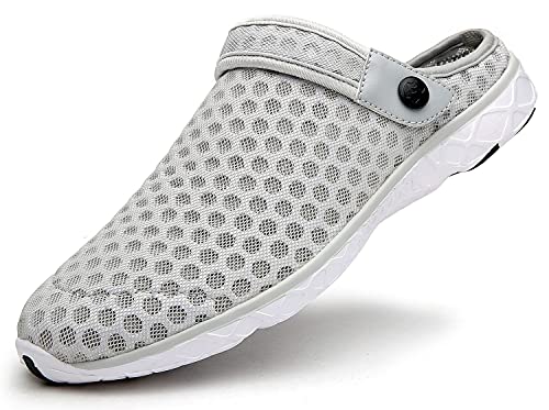 Femmes Hommes Sabots Mules Respirant Chaussures de Jardin Perforés-Sabot de Plage Sport Pantoufles Piscine Sandales D'Été Chaussures,Gris Clair,43 EU
