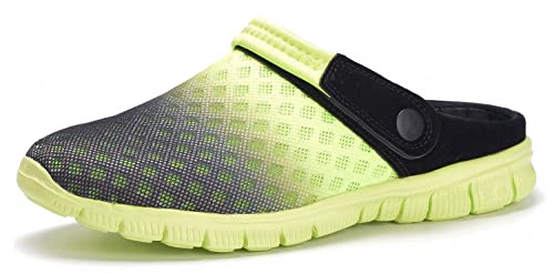 Femmes Hommes Sabots Mules Respirant Chaussures de Jardin Perforés-Sabot de Plage Sport Pantoufles Piscine Sandales D'Été Chaussures, Noir Vert, 45 EU