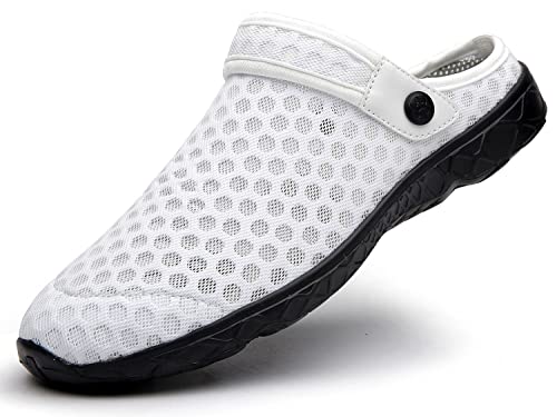 Femmes Hommes Sabots Mules Respirant Chaussures de Jardin Perforés-Sabot de Plage Sport Pantoufles Piscine Sandales D'Été Chaussures,Blanc,37 EU