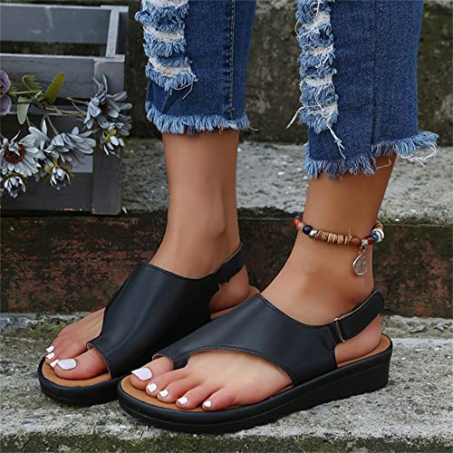 BBPM Sandales orthopédiques correctrices d'oignons pour Femmes Correction des Gros Orteils Chaussures en Cuir PU Confortable Casual Sandales d'été à Semelle Plate,Noir,EU40/US8