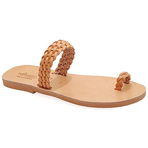 37 beige Emmanuela Sandales dans un ancien style grec, sandales plates en cuir tressé avec bague à orteils, chaussures d'été de haute qualité pour femmes, sandales à glissière boho chic