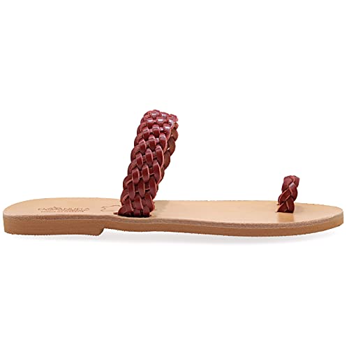 38 rouge Emmanuela Sandales dans un ancien style grec, sandales plates en cuir tressé avec bague à orteils, chaussures d'été de haute qualité pour femmes, sandales à glissière boho chic