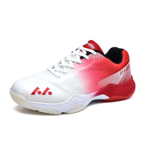 SDEQA Chaussures de Badminton pour Hommes Femmes Unisexe Chaussures d'entraînement pour l'intérieur Antidérapantes et légères pour Racketball Squash Volleyball,Rouge,43 EU