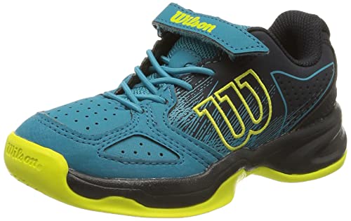 Wilson Chaussures de Tennis pour Adolescents et Enfants, KAOS K, Bleu/Bleu/Vert, 32, pour tout type de surfaces, pour les joueurs de tout niveau, WRS327940E135