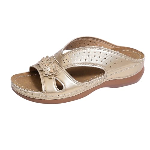 SCBFDI Chaussures Femme Confort Chic Mule Femme Été Confortable Sandales à Enfiler avec Semelle Ergonomique et Détails Floraux Dessus Respirant Sans Lacets Sandales Rhodes Or 38