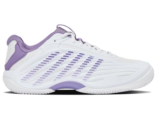 K-Swiss Hypercourt Express 3 Clay - Chaussures de Tennis pour Femme - Blanc/Violet - Jupe Lunaire - Taille 43 EU