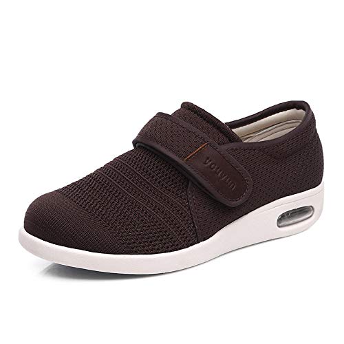 Nwarmsouth Chaussons pour œdème des Pieds enflés,Chaussures de Vieil Homme réglables, Chaussures de Pouce valgus, Chaussures de Pieds gonflés-47_Brown,Pantoufle réglable orthopédique Wide Fit