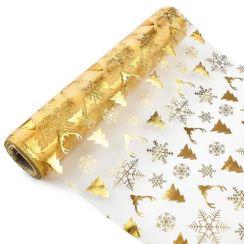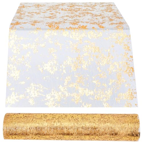 Nappe Dorée Brillante et Chemin de Table en Film Doré - Décoration de Fête et Mariage (28 cm x 10 m)