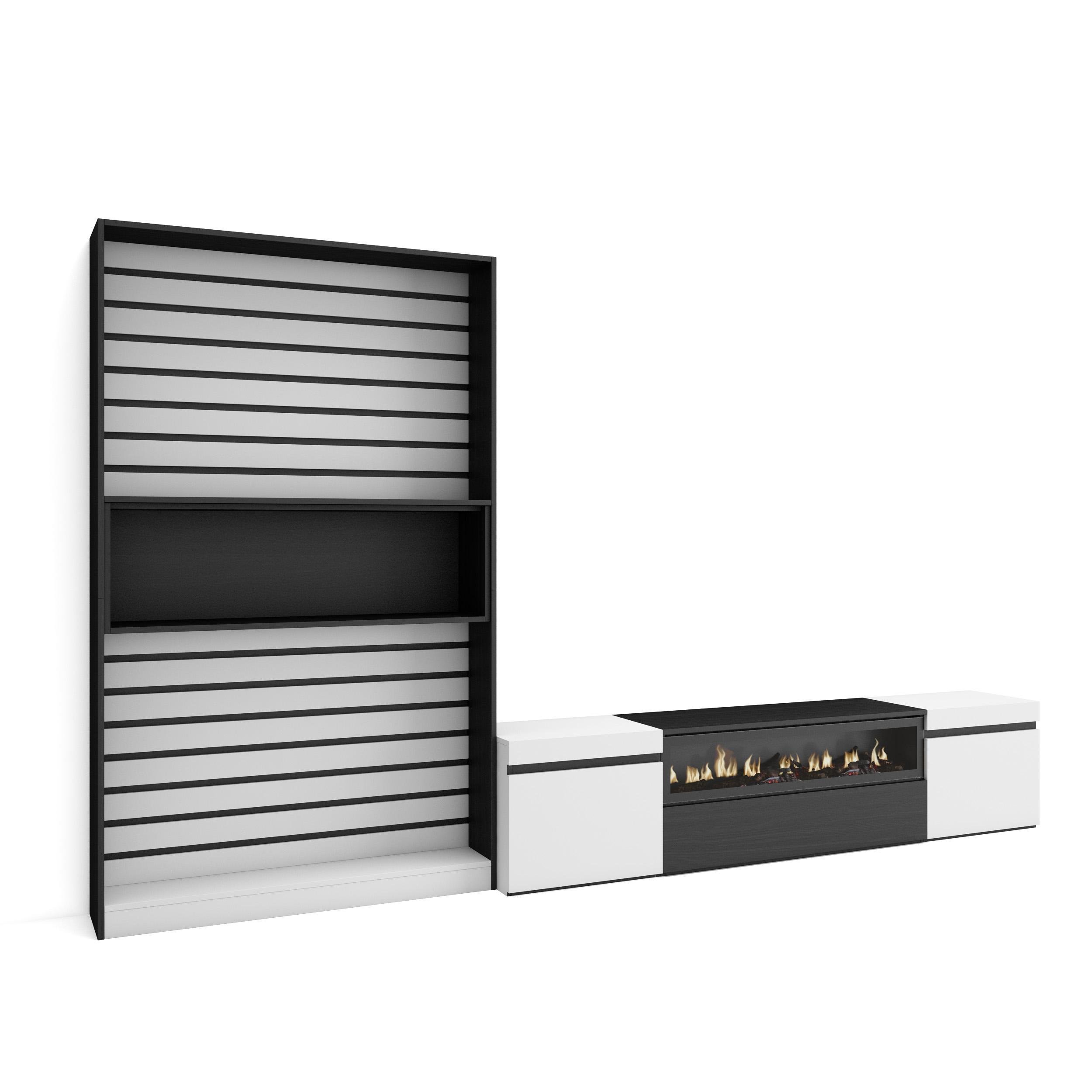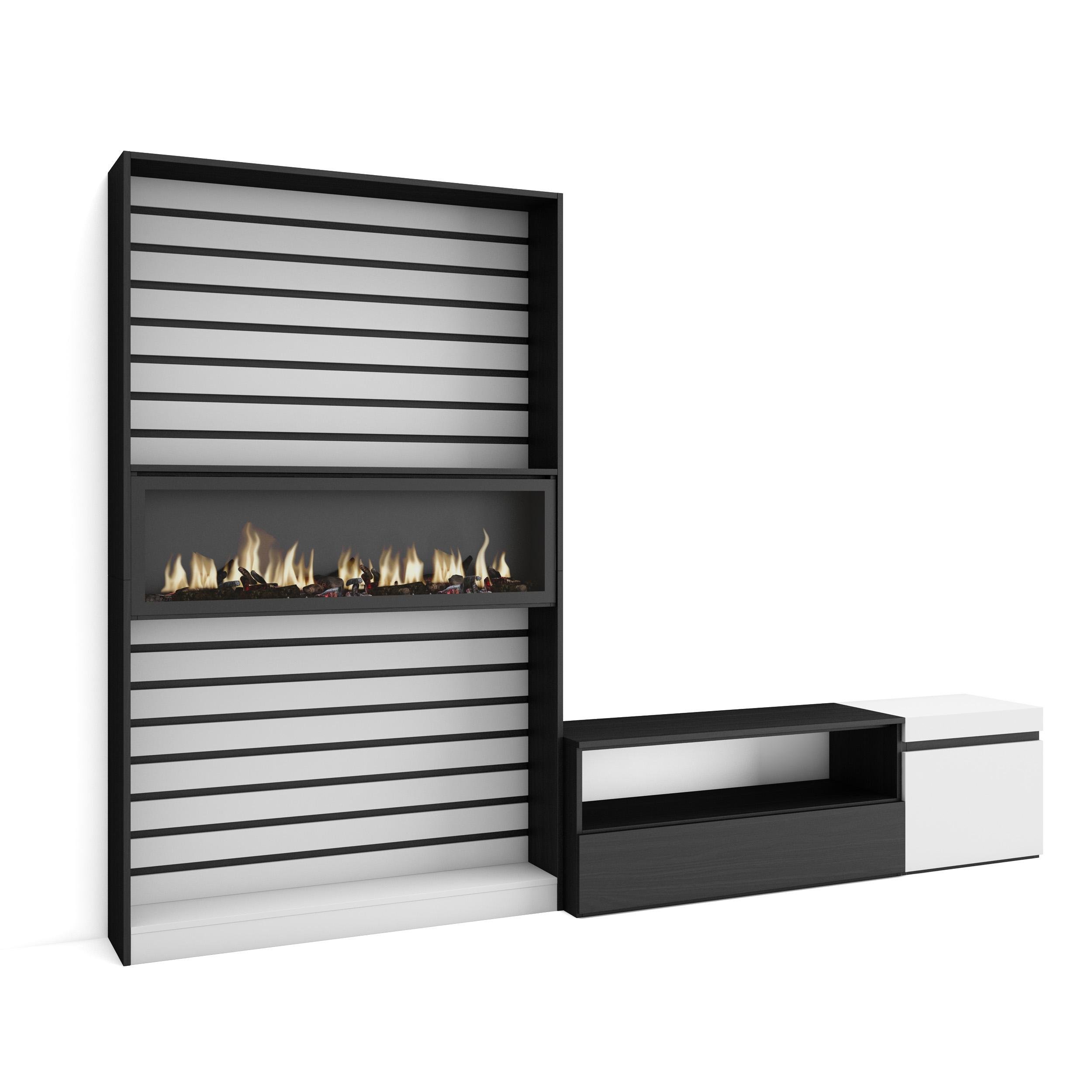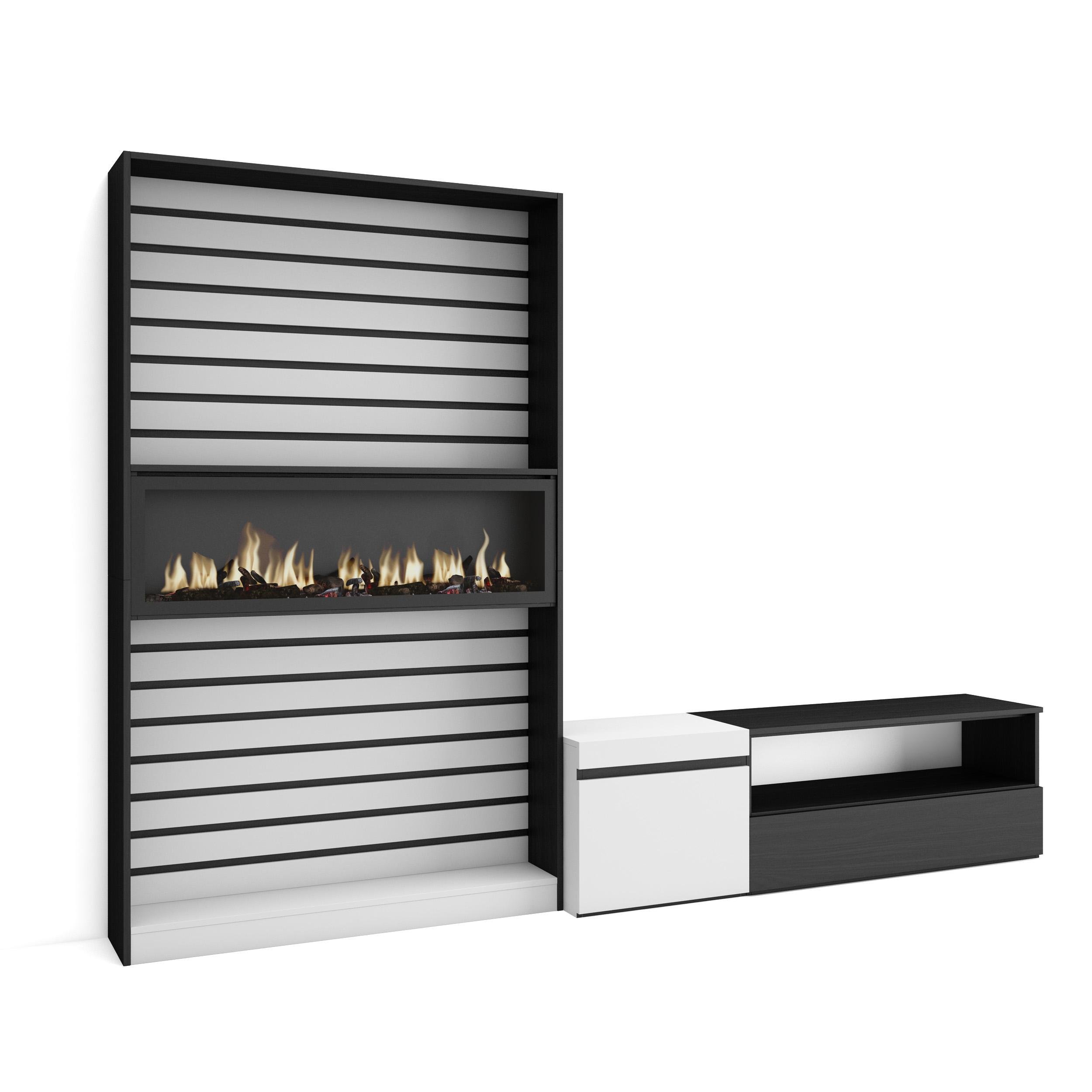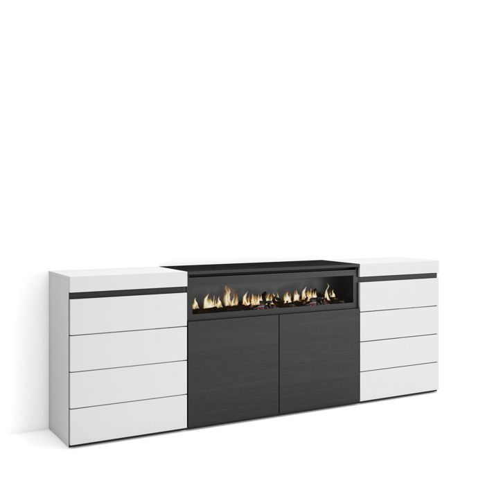 Commode Buffet Armoire 214x35x75 cm Chambre à coucher pièce Cheminée électrique Blanc et noir RF3425