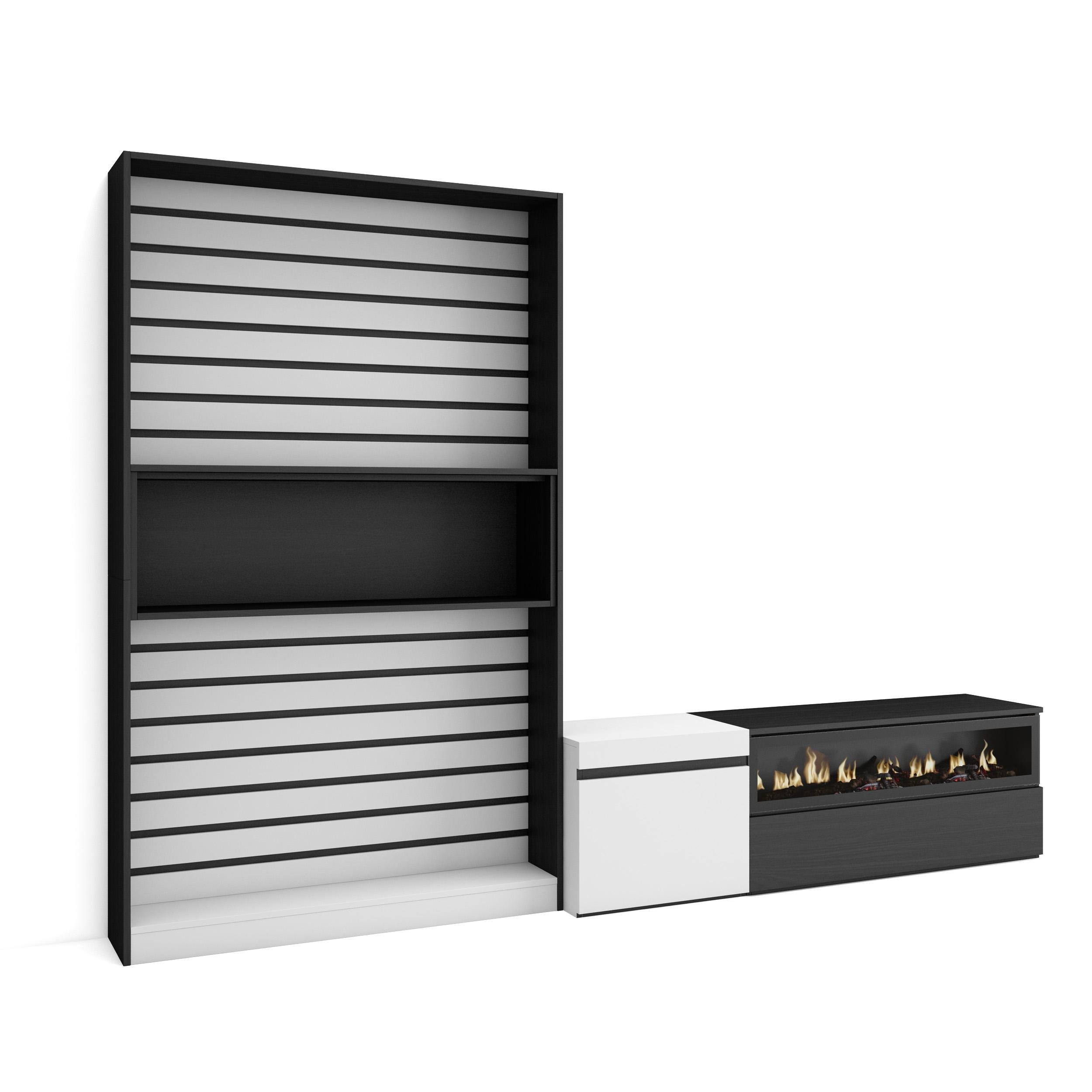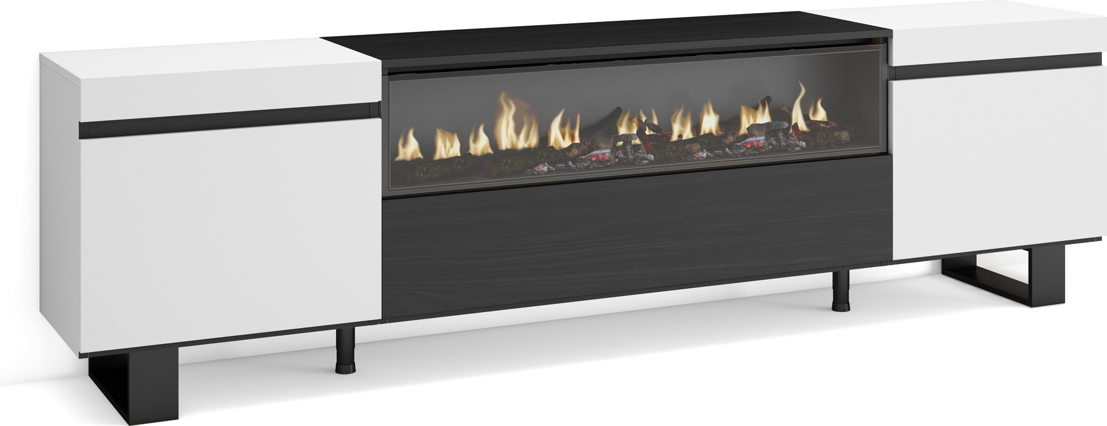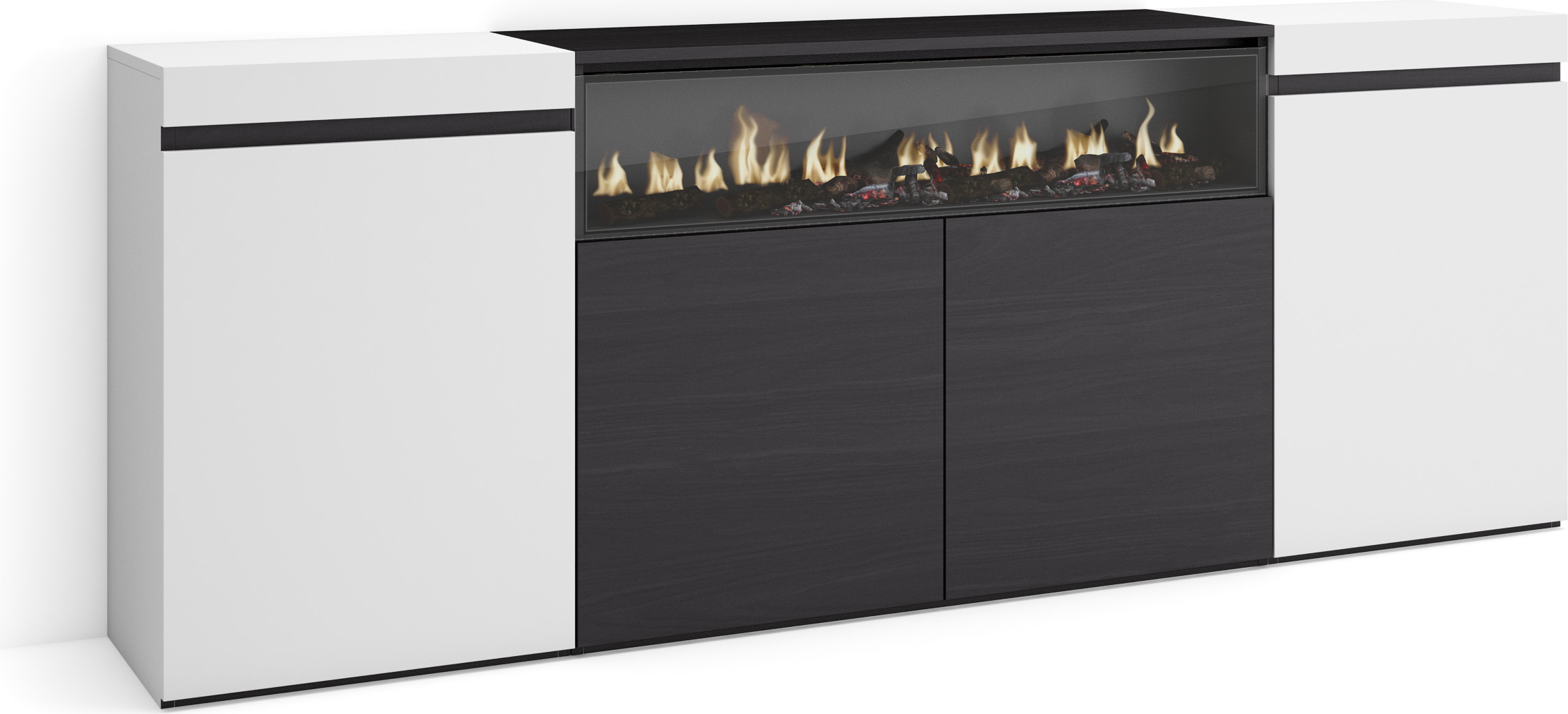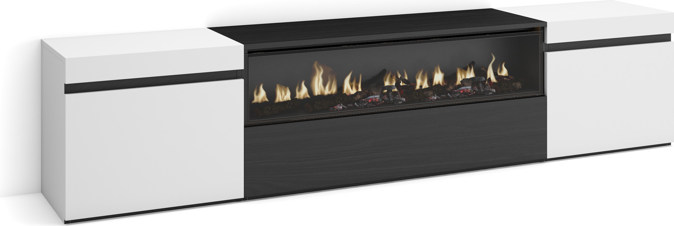 Commode Buffet Armoire 214x35x75 cm Chambre à coucher pièce Cheminée électrique Blanc et noir RF3425
