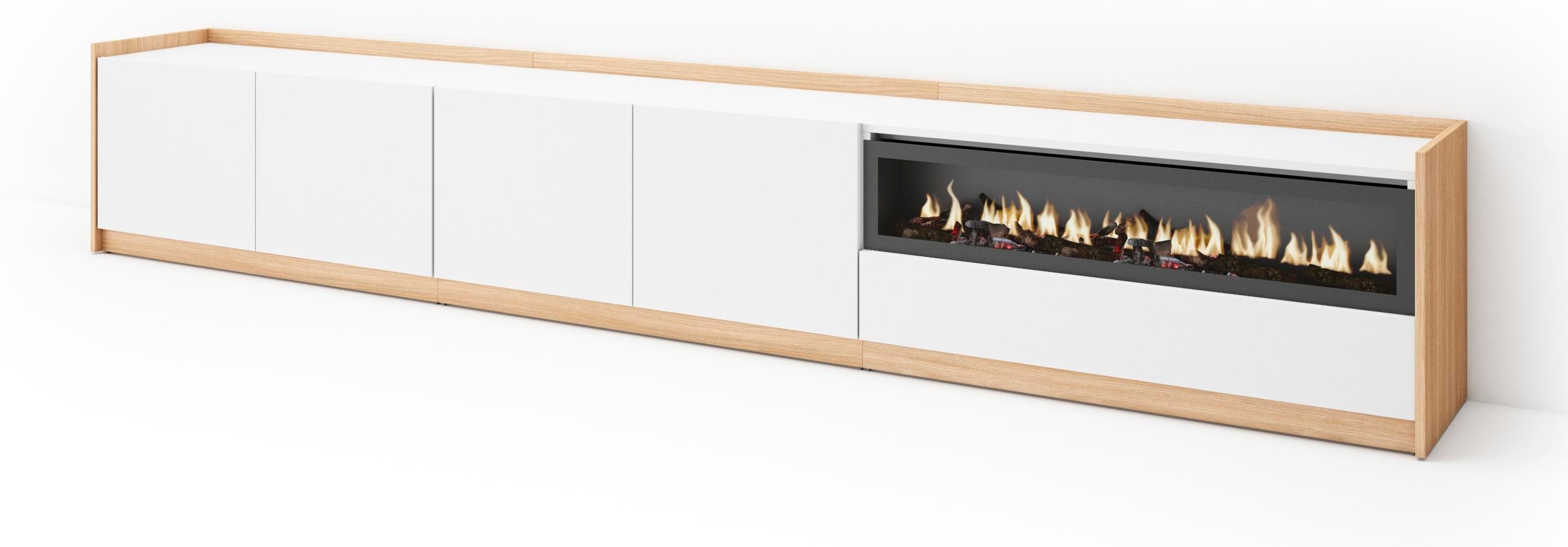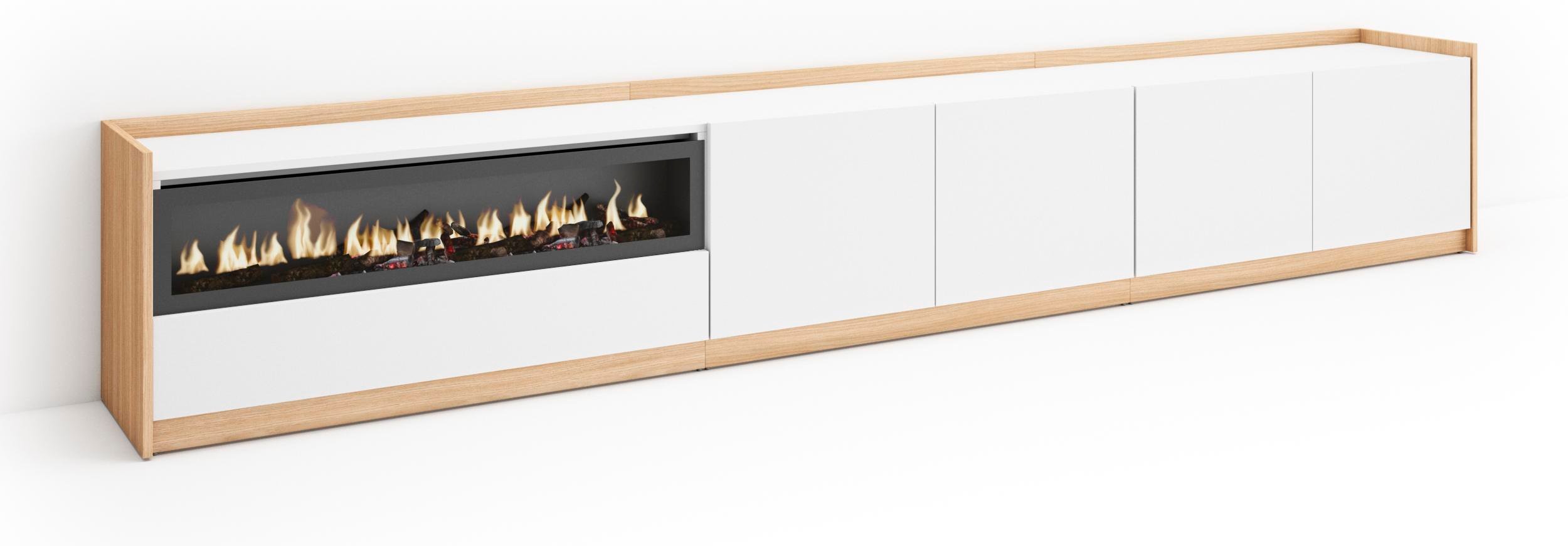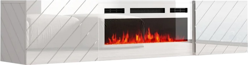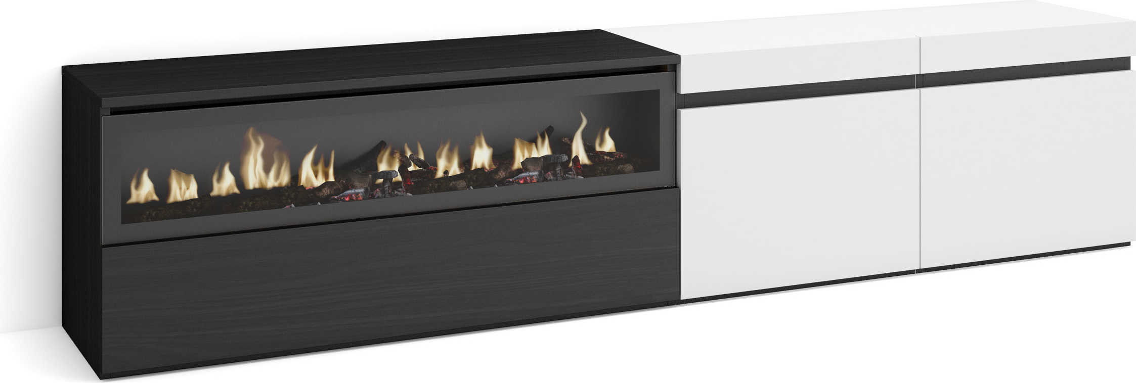 Commode Buffet Armoire 214x35x75 cm Chambre à coucher pièce Cheminée électrique Blanc et noir RF3425
