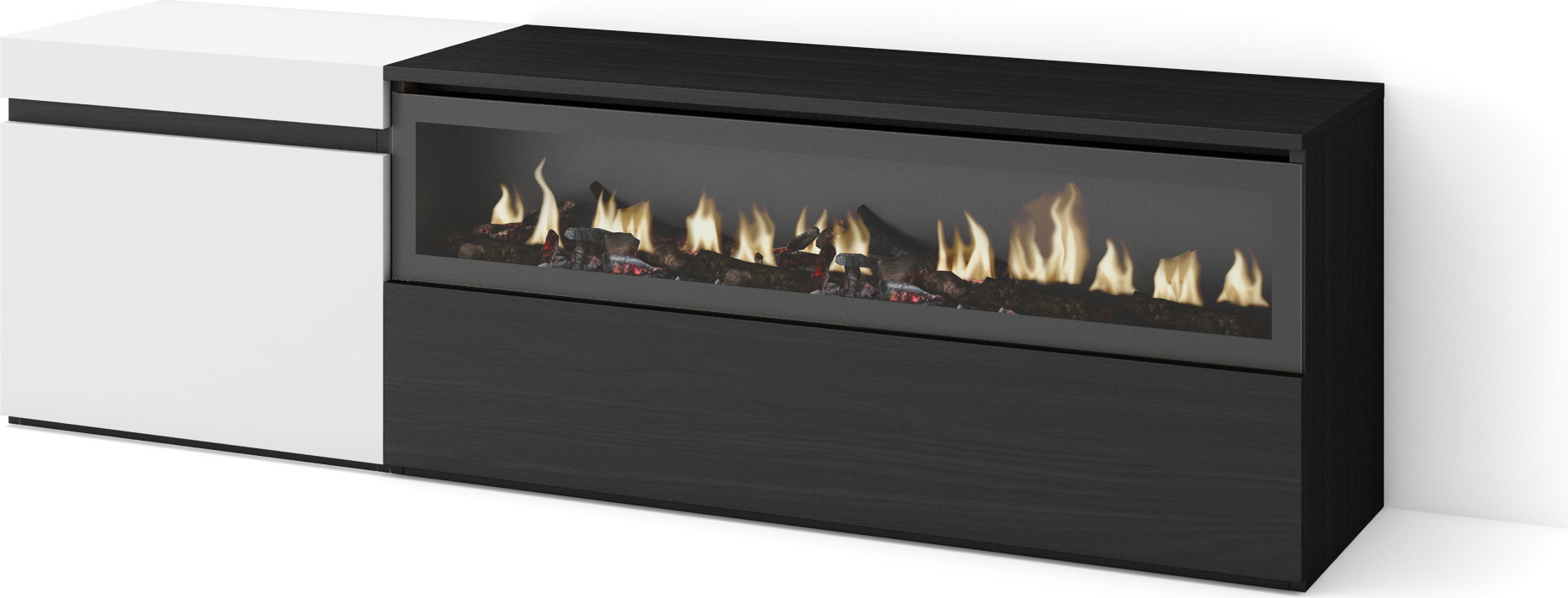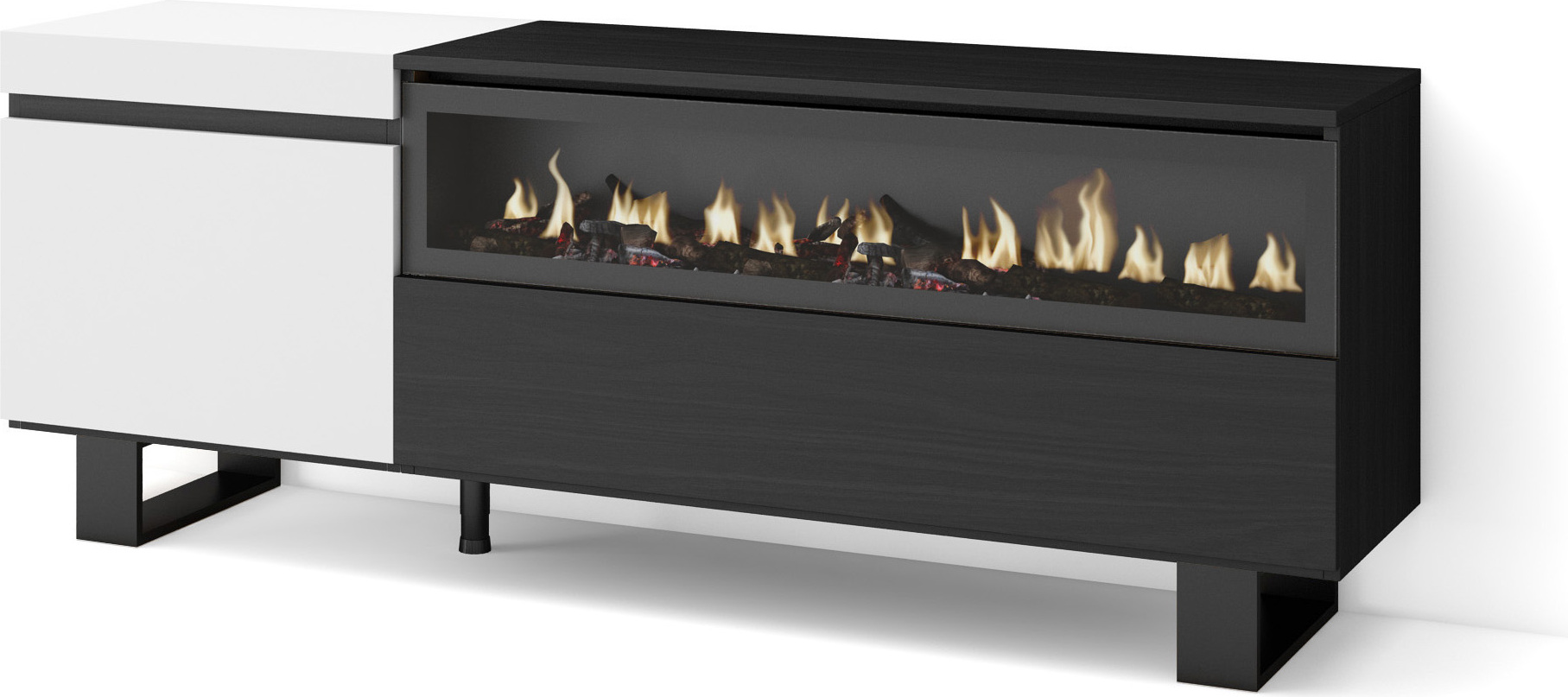 Commode Buffet Armoire 157x35x75 cm Chambre à coucher pièce Cheminée électrique Blanc et noir RF3424