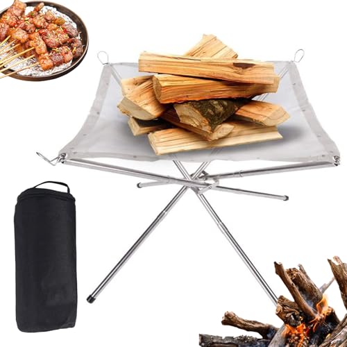 Foyer | Foyer d'extérieur Pliable à Bois – Cheminée en Maille résistante intempéries et antirouille pour Jardin, Patio, Barbecue