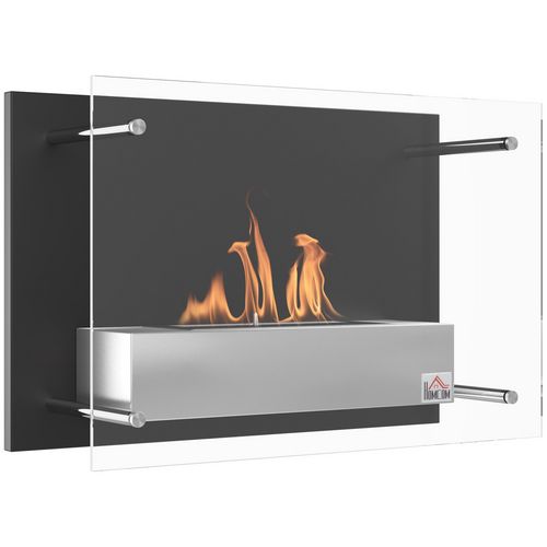 Cheminée bioéthanol murale design Bauhaus - double brûleur 0,85 L - pare-feu verre trempé - acier inox. acier noir