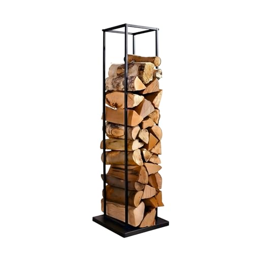 Wintem – Porte-bois en métal 33 × 33 × 115 cm pour cheminée et poêle, design vertical peu encombrant, facile à assembler et ultra-résistant, idéal pour ranger le bois de chauffage