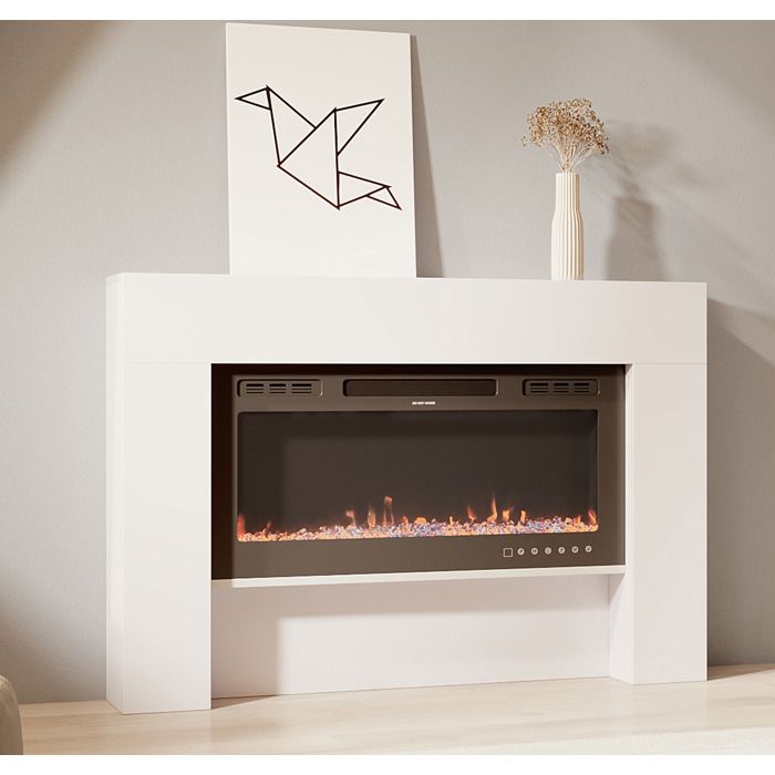 Cheminée électrique design contemporain 2000W effets flammes LED 3D dim. 119L x 30l x 45H cm éléments décoratifs télécommande inclus blanc