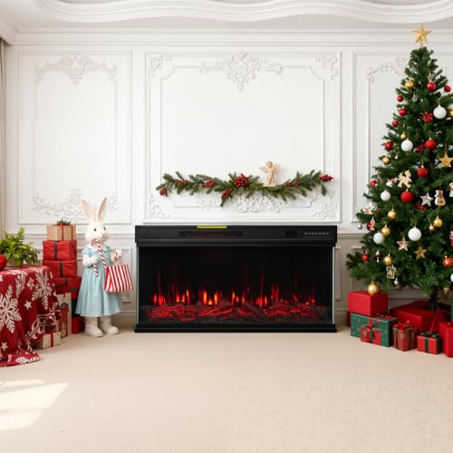 HOMAVO 36" Cheminée Électrique, 1000W/2000W Cheminée Électrique Chauffante, 12 Couleurs de Flamme 3D, Pose Murale/Encastrable, Télécommande, avec Bande Lumineuse