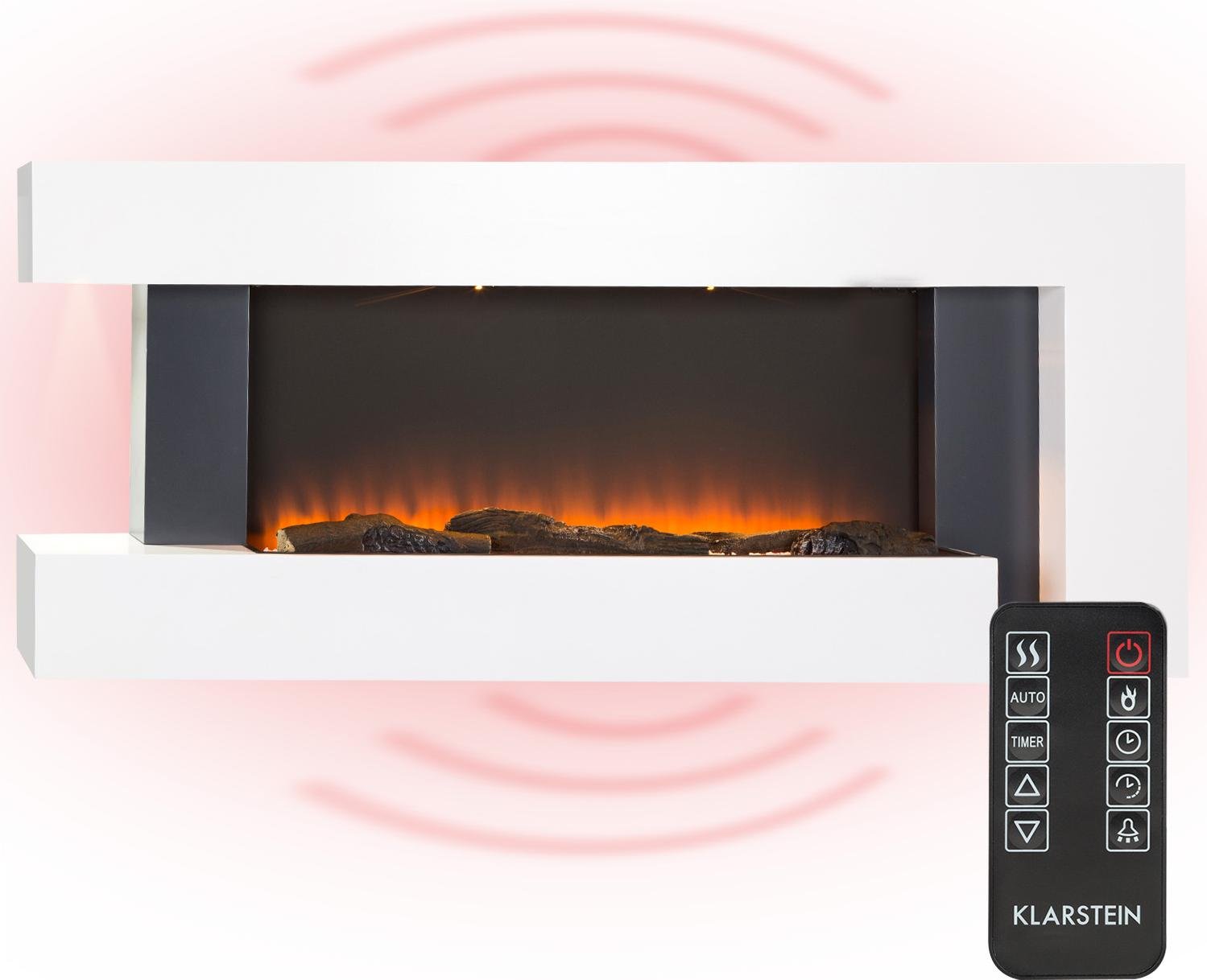 Klarstein Chauffage Cheminee Electrique Effet Flamme, Decorative Chauffante de 2000W, Télécommande et Minuterie, Fausse Cheminée a LED Murale a Poser
