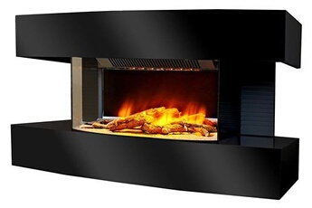 Cheminee electrique murale 2000W galbée noire effet feu de cheminee LED chauffage 2000W Télécommande