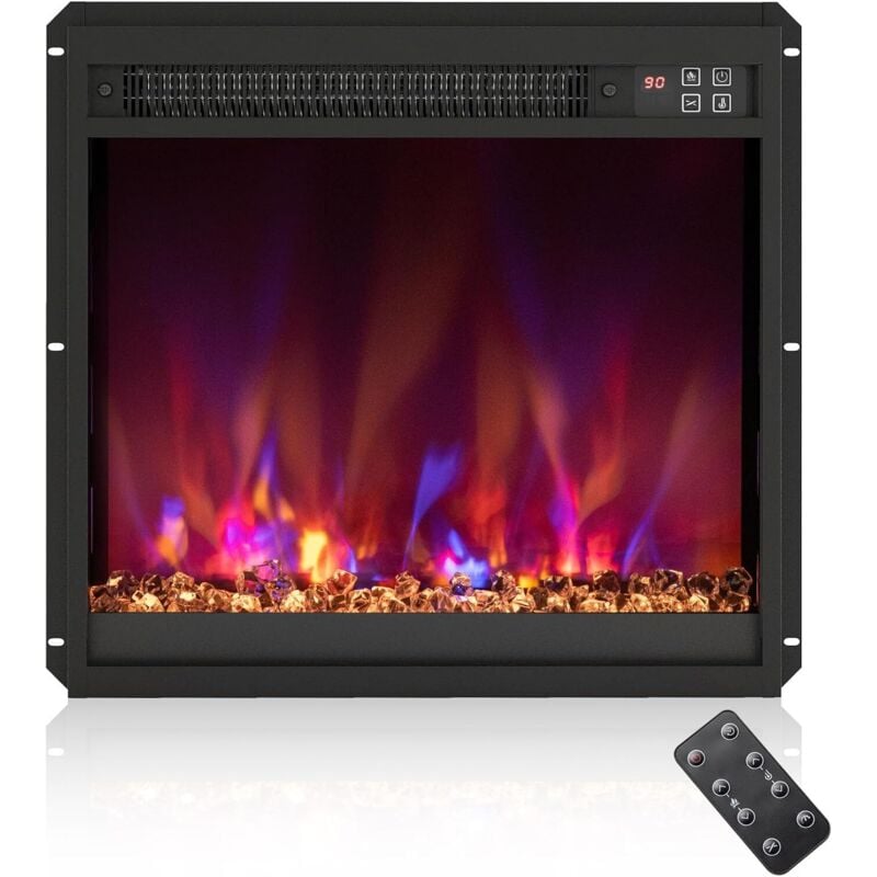 Insert de Cheminée Électrique 23" Chauffage Cheminée Encastré 1500W avec Télécommande Minuterie 0,5-9H Couleur de Flamme Noir