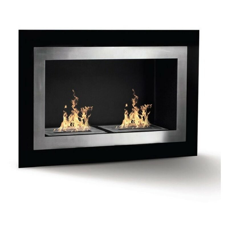 Vespasiano - Cheminée murale à éthanol 80x51x16 cm avec 2 brûleurs de 3 litres Noir