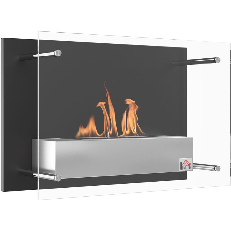 Homcom – Cheminée bioéthanol murale – Double brûleur 0,85 L – Pare-feu en verre trempé – Acier inox noir – Capacité de chauffe 30 m²
