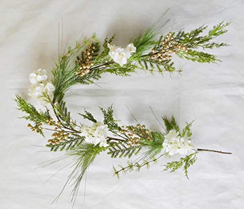 SHATCHI Guirlande de Feuilles artificielles, Baies et Fleurs d'aspect Naturel, 1,5 m, pour Maison, Porte, cheminée, Noël, Mariage, Noël, doré/Rouge/Neige, PVC, Vert, 150 cm