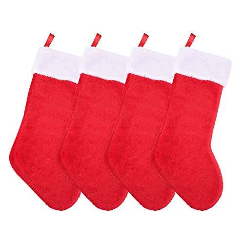 Livder Lot de 4 Bas de Noël en Velours à Suspendre pour cheminée, Décoration Noel - Rouge et Blanc - 50,8 cm