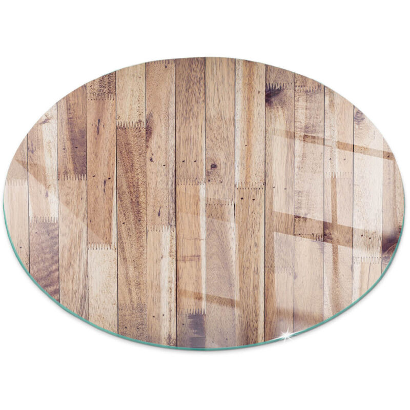 Plaque de protection de sol en verre pour cheminée ou poêle moderne anti-chaleur et étincelles Texture de planches de bois Ronde fi 60 cm