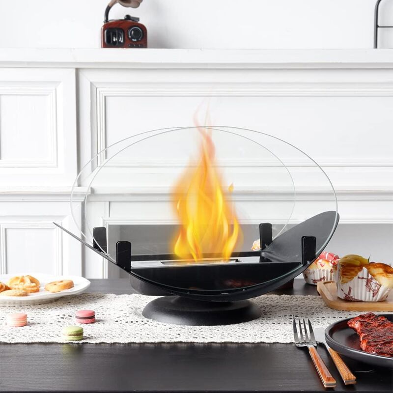 Cheminée au bioéthanol, cheminée à l'éthanol de table, cheminée de table, cheminée de table portable, poêle d'extérieur, cadeau, ronde et autonome,
