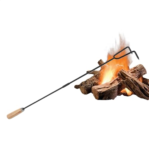 Fire Poker Outil de cheminée portable en plein air | Manche en bois de 33 pouces pour cheminée, long pour feu de camp, outils pour utilisation