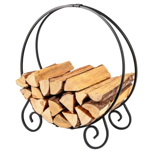 GOPLUS Range Buche Interieur en Métal, Porte Buche Interieur avec Structure Ronde 59 X 27 X 64 CM et Base Stable, Rangement Bois Charge 270 KG, Range Bois pour Cheminée