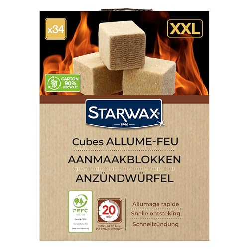 STARWAX – Cubes allume-feu PEFC – Allumage rapide et longue combustion jusqu’à 20 min – Sans odeur – N’altère pas la saveur des aliments – Pour barbecue, cheminée, poêle – Lot de 34
