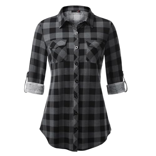 Chemise à carreaux pour femme - Chemisier traditionnel à carreaux pour femme - Chemise à carreaux - Chemise à carreaux - Chemise de bûcheron - Chemise décontractée à manches longues - Chemise