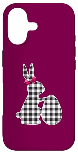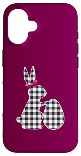 Bunny Buffalo Chemise Noire à Carreaux pour Femme Happy Easter Day Coque pour iPhone 16 Plus