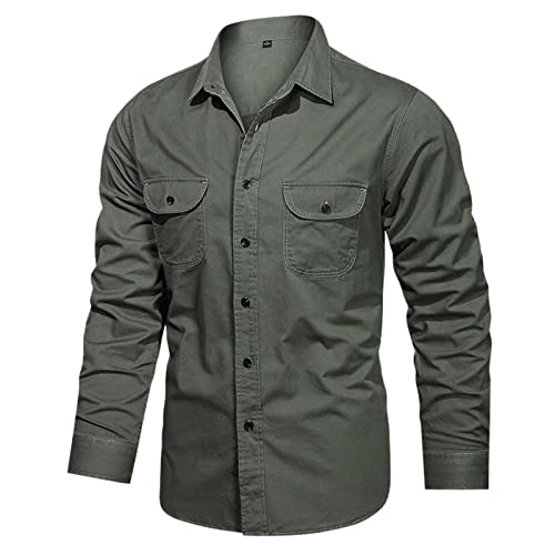 Chemisette pour Homme - Thee Shirts Homme Surchemise Chemise De Cardigan À Poche Camouflage À La Mode pour Hommes (Army Green XXL)