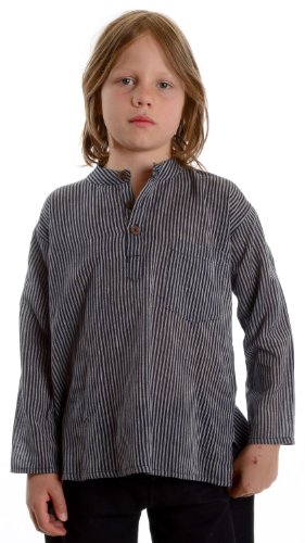 HEMAD Chemise médiévale pour Enfants avec col Mao - rayé, Pur Coton - M Bleu