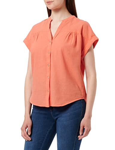 Springfield Chemise Col Mao Manches Courtes Lin Coton, Orange, 34 Femme