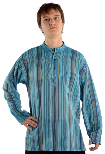 Hemad.de - Chemise avec Col Mao en Pur Coton - Kurta De Nepal - Turquoise - L