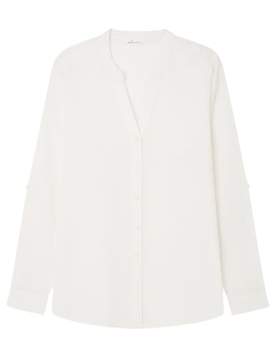 SPRINGFIELD Basic Mao Collar Linen Shirt, Chemise Business Femme,