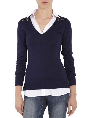 Morgan Femme 2 En 1 Col Chemise Mylord Pullover Sweater, Marine/ Blanc, 38 EU