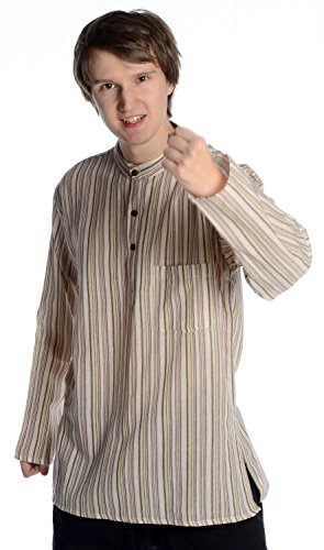Hemad.de - Chemise avec Col Mao en Pur Coton - Kurta De Nepal - Rayée Marron/ - Beige - L