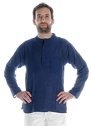 HEMAD Chemise avec Col Mao en Pur Coton - Kurta De Nepal - Bleu - XXXL